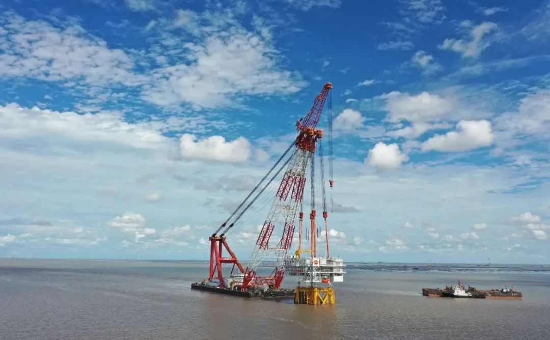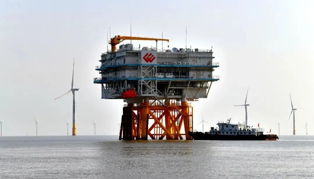 ▲吊装完成的国华投资东台海上风电项目升压站点赞+在看