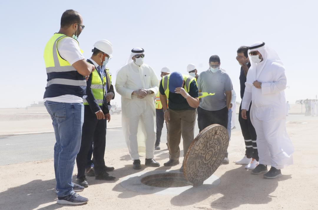 项目未来效果图当天,科威特住房福利署联合科威特公共工程部、水电部、市政厅等多部门组成的“项目接收委员会”参加了移交仪式,并前往项目N6等区块进行考察和接收,重点检查了施工现场的雨污水检查井、通讯手孔、雨水口、供水阀门、变电站、道路沥青混凝土、路缘石等部位。