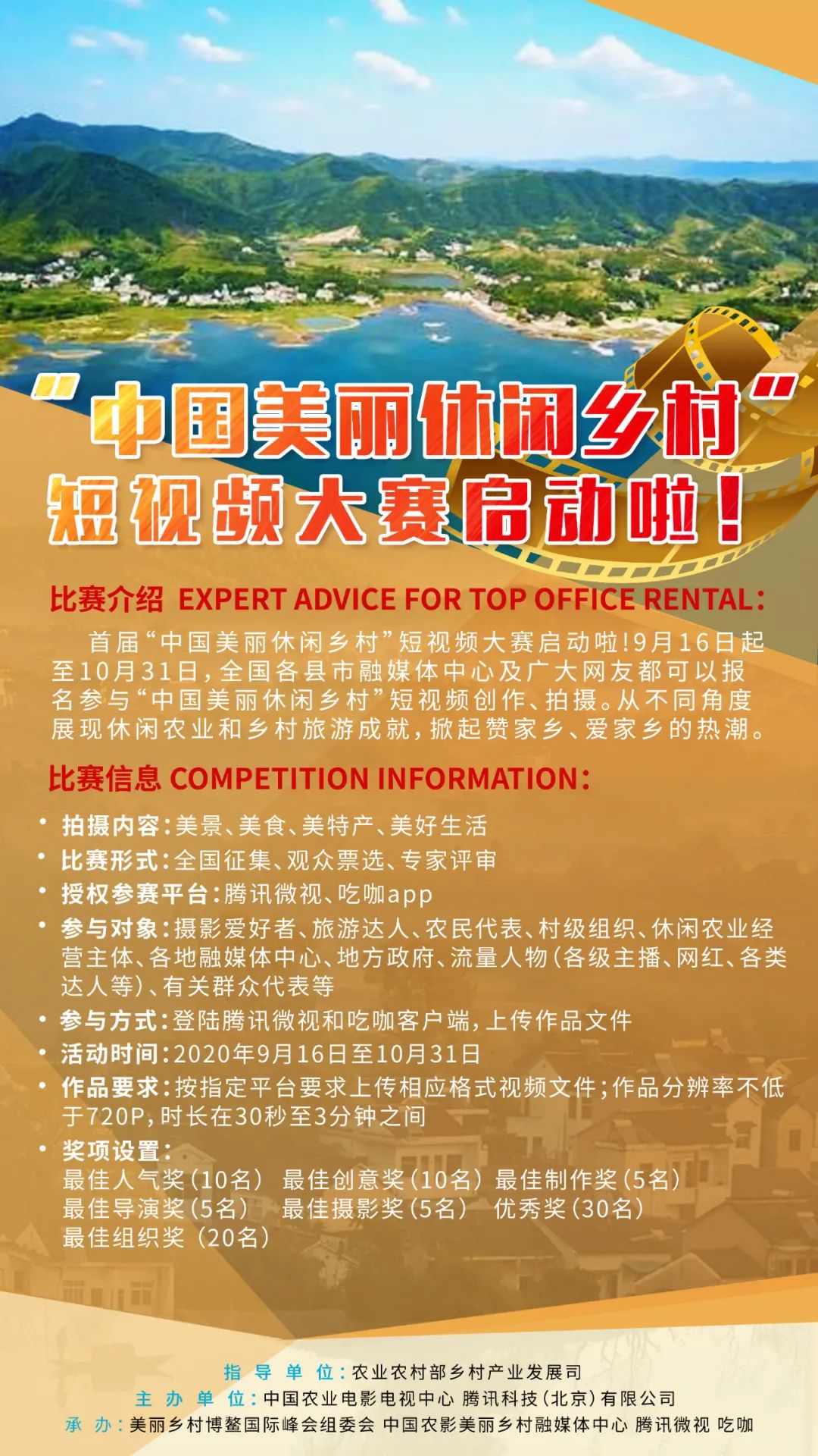 原标题:《全国大赛等你来秀!首届中国美丽休闲乡村短视频大赛开启!》