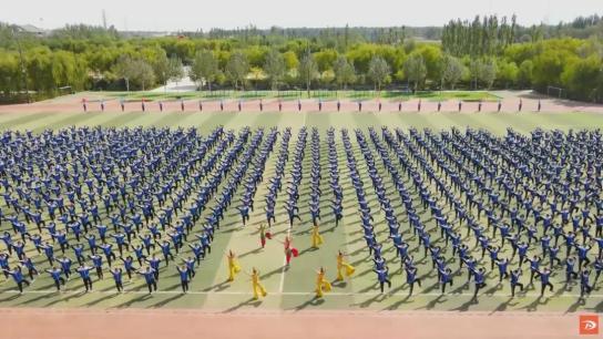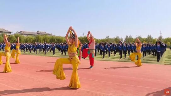 近日,甘肃酒泉一中学学生在课间操时跳起了敦煌舞