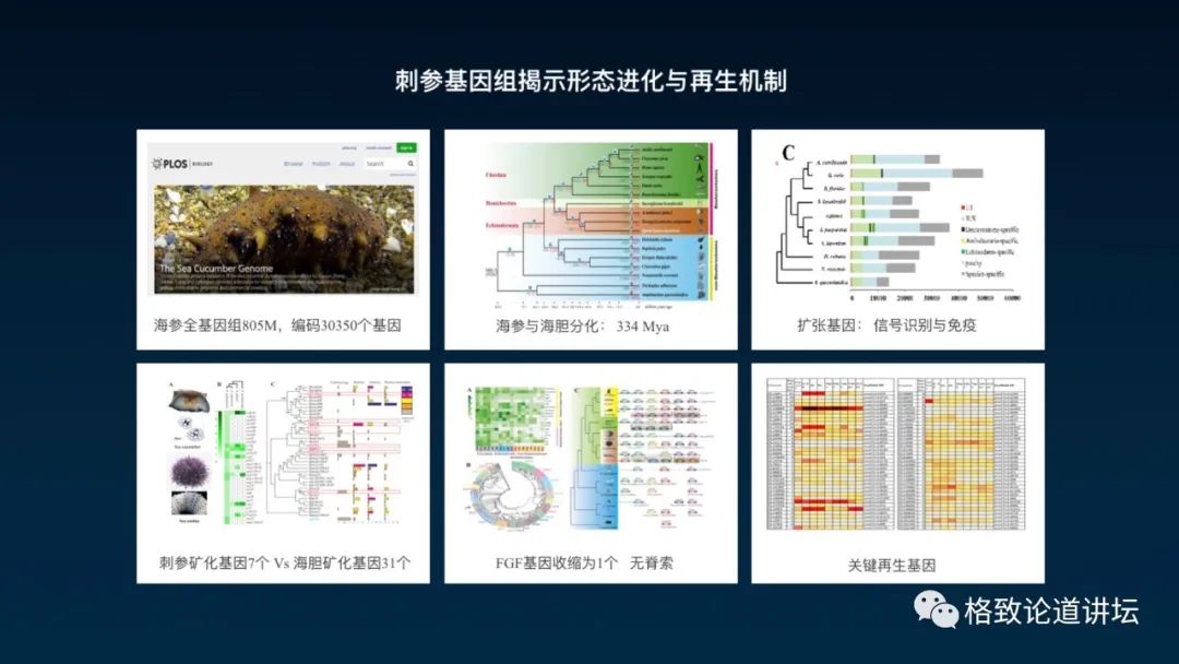 像做探索人类基因组计划那样,我们研究海参特性的时候也破译了它的基因组,现在我们知道为什么海参长那么多刺,为什么它会有再生功能。
