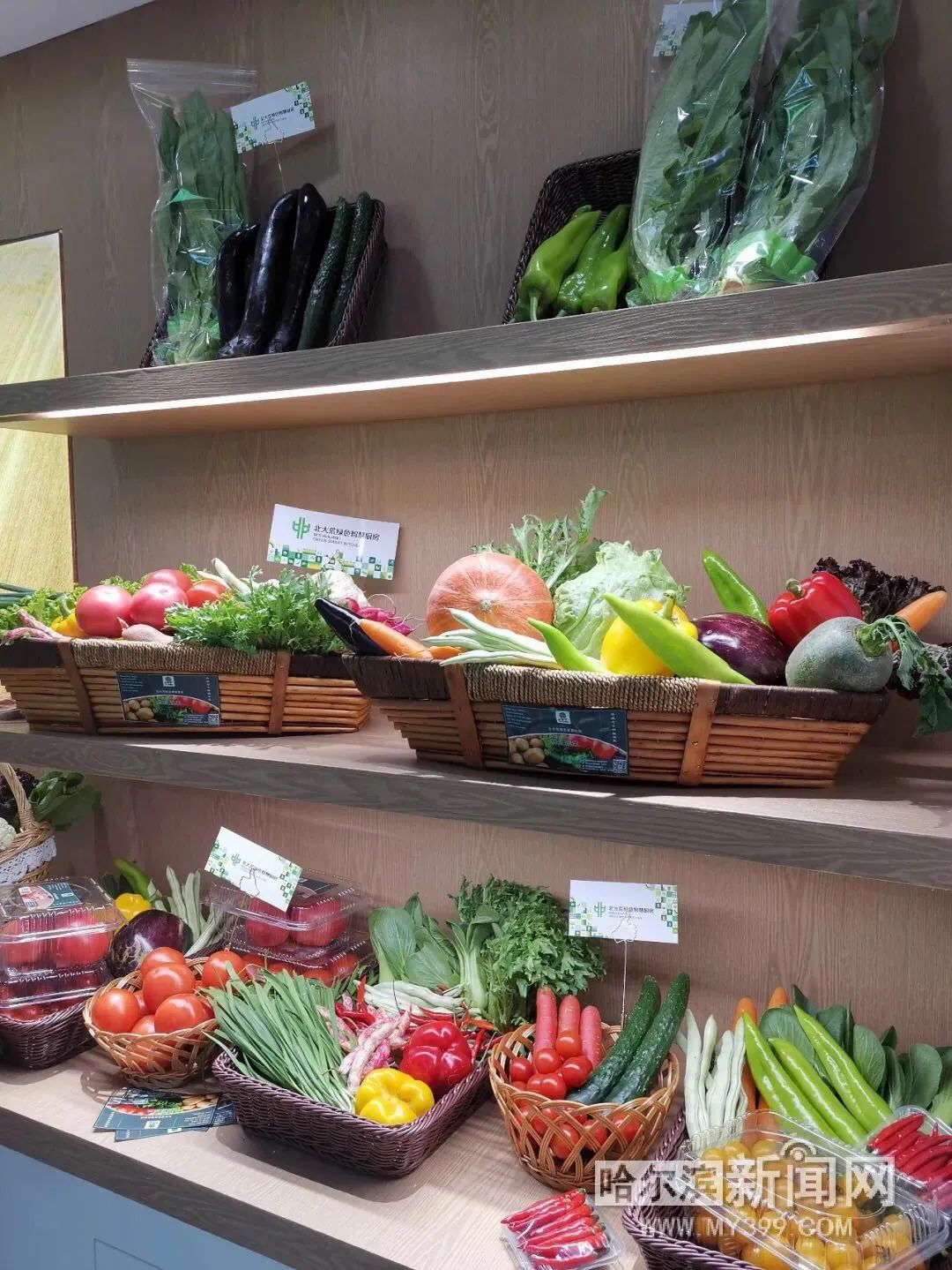据了解,北大荒农垦集团哈尔滨有限公司参展的零农残果蔬独家高品质蔬菜扮靓了绿博会,此次参展的果蔬是来自公司合作方大连基地采用新技术生产的农产品,有黄瓜、西红柿、油菜、辣椒等15个品类30余种蔬菜。手机扫一扫蔬菜包装上的二维码就可以查看到产品的检测信息,让消费者吃着放心。
