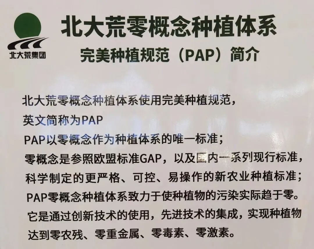 据介绍,北大荒零概念种植体系标准(简称PAP)是参照欧盟标准GAP,以及国内一系列现行标准,科学制定的更严格、可控、易操作的新农业种植标准。