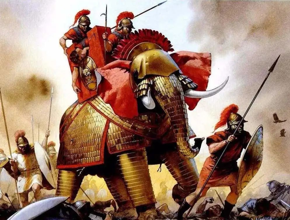 罗马人越过了如林的长矛,用自己的石弹,标枪去打击方阵中央的大象。这些大象很快就发了疯,疯狂的践踏自己的战友。