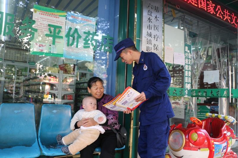 六枝消防宣传走上街头,预热119消防宣传月