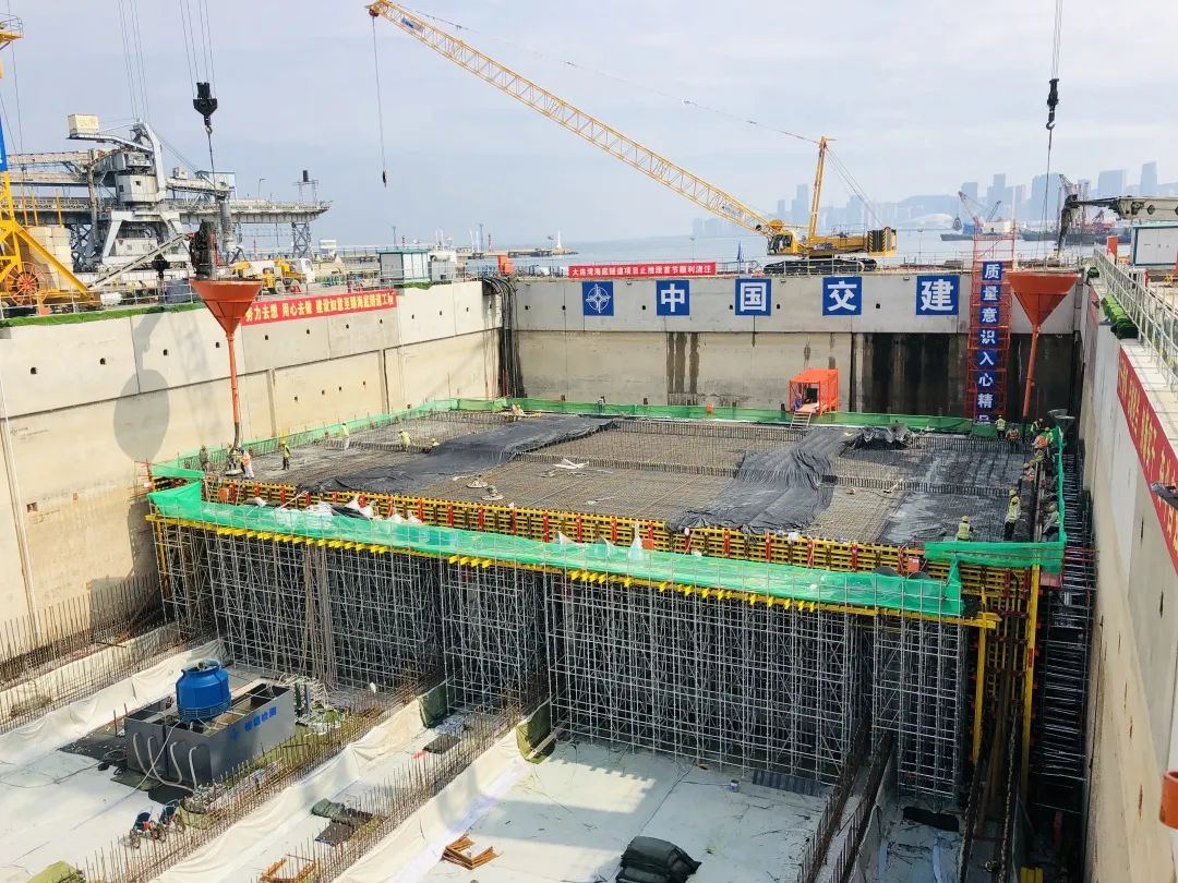 钢筋绑扎问题刚解决,新的难题又接踵而至。止推段预埋件设计必须具有超强止水功能,特别是与首节沉管对接的钢端壳断面尺寸就达到宽30米、高10米,每米的平整度必须控制在1毫米内。张超深知,高精度的施工是止水功能的重要保障,所以预埋件加工期间,他与厂家反复沟通优化生产工艺,甚至一度驻厂监督,与工人们吃住在一起,生怕出现任何质量问题。完成了生产只是第一步,等到预埋件安装阶段,张超变得更加小心翼翼。为了确保安装精准度,必须有一套严密的方案。询问、画图、计算……经过反复验证,张超带着团队确定了用整体预拼的方式安装钢端壳的方法,就是把钢端壳整体安装完成后一次性在现场进行对接。张超坦言这个方法很大胆,但不得不说这是个好办法!“整体预拼避免了工人们的高空作业,便捷高效,而且不影响其他工序施工,整体进度也能得到保证。”王坤说。