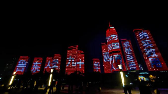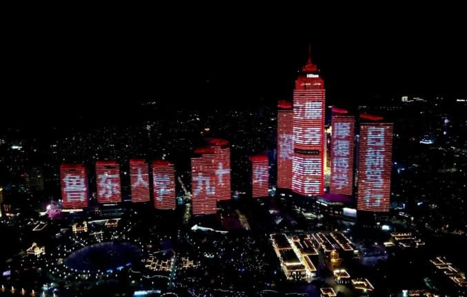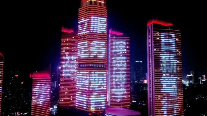 楼宇为屏,科技为笔,灯光为墨亮起的灯光秀