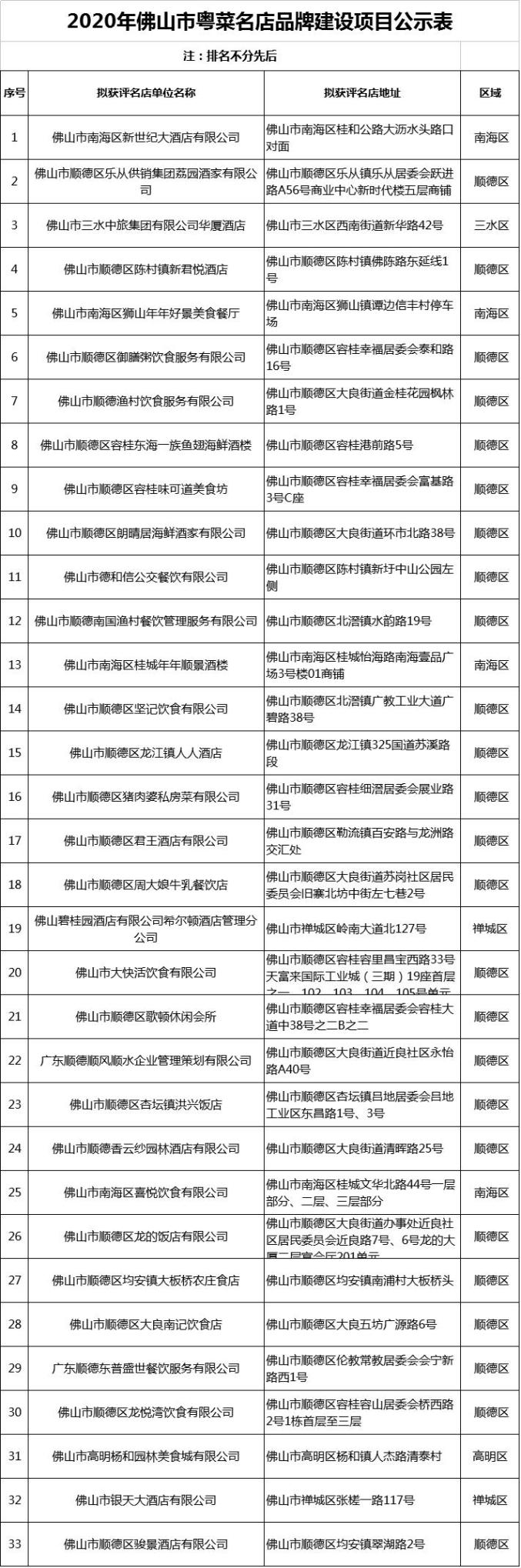 10月19日,佛山市商务局发布2020年“佛山市粤菜名店、名菜、名点”最终评审结果的公示,公示期为7天。