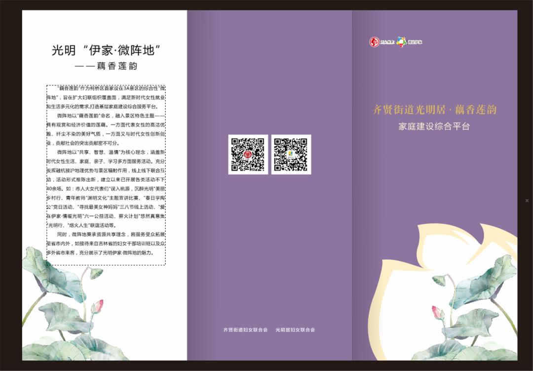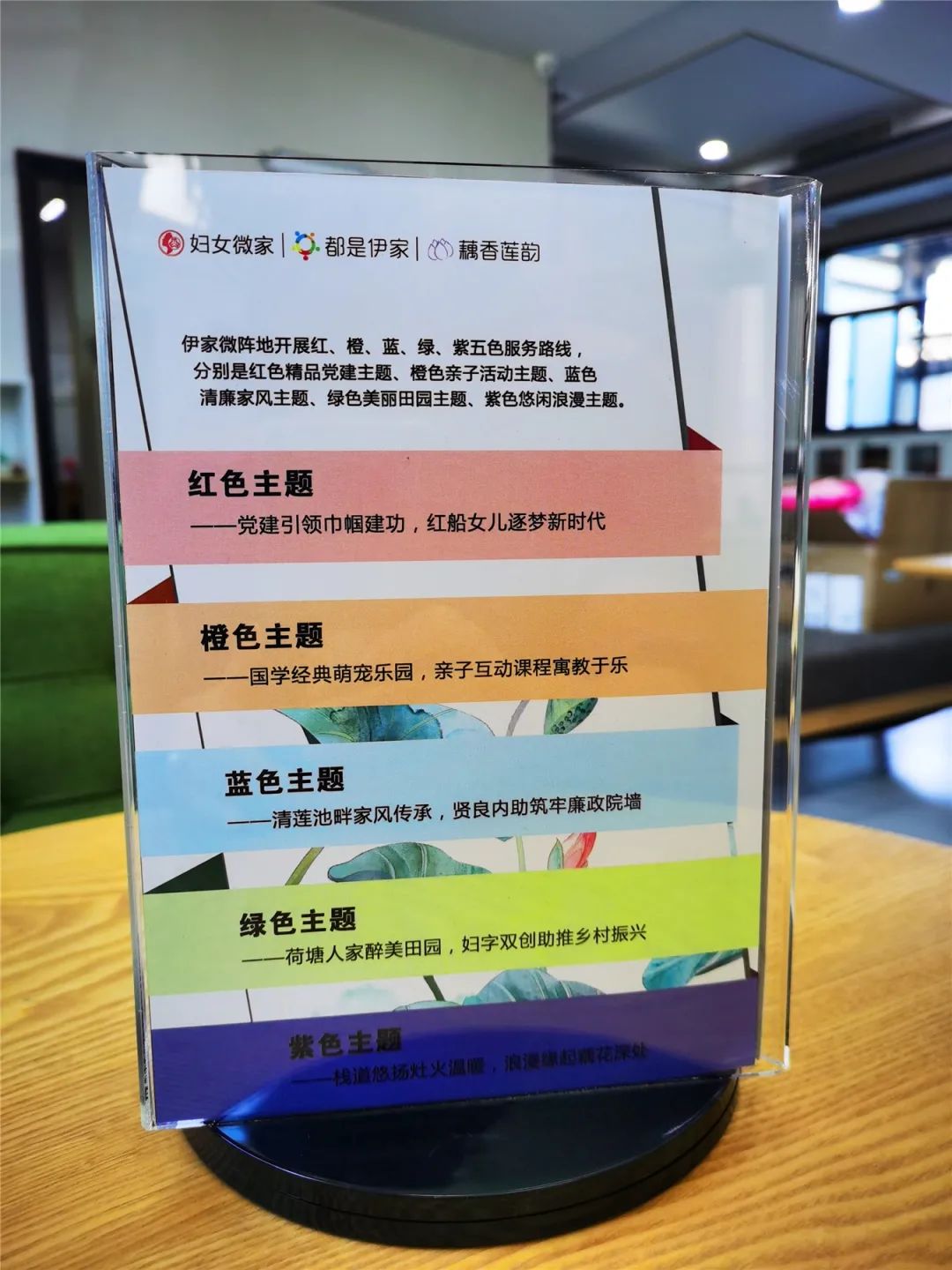 精心打造可视化阵地。内部阵地,在光明居便民服务中心二楼以“都是伊家·藕香莲韵”为主题,打造集妇联工作风采展示、亲子活动室、母婴休息室于一体的可视化阵地。装修风格清爽活泼,充分显示妇联品位风尚。将游客服务中心一楼大厅的展示架内容提档升级,放置手工藕粉、荷叶茶、等代售农产品。