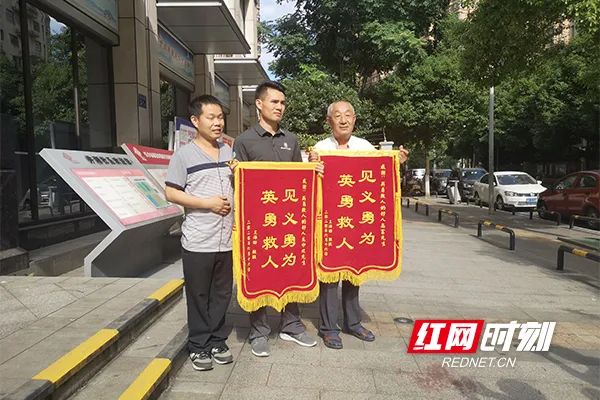 落水男孩父亲给救自己儿子的龙中欢(右二)和高富(右一)送上锦旗以示感恩。随着新时代文明实践点的不断建成,居民的文明素养、观念都在潜移默化中悄悄改变。