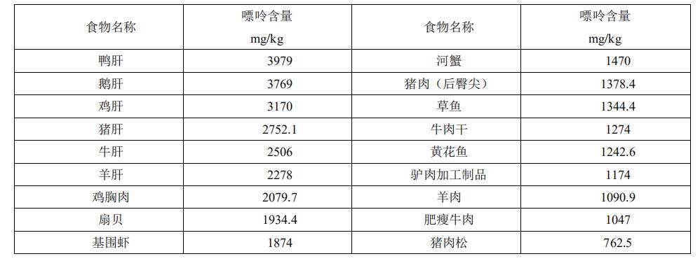 表1:常见动物性食物嘌呤含量
