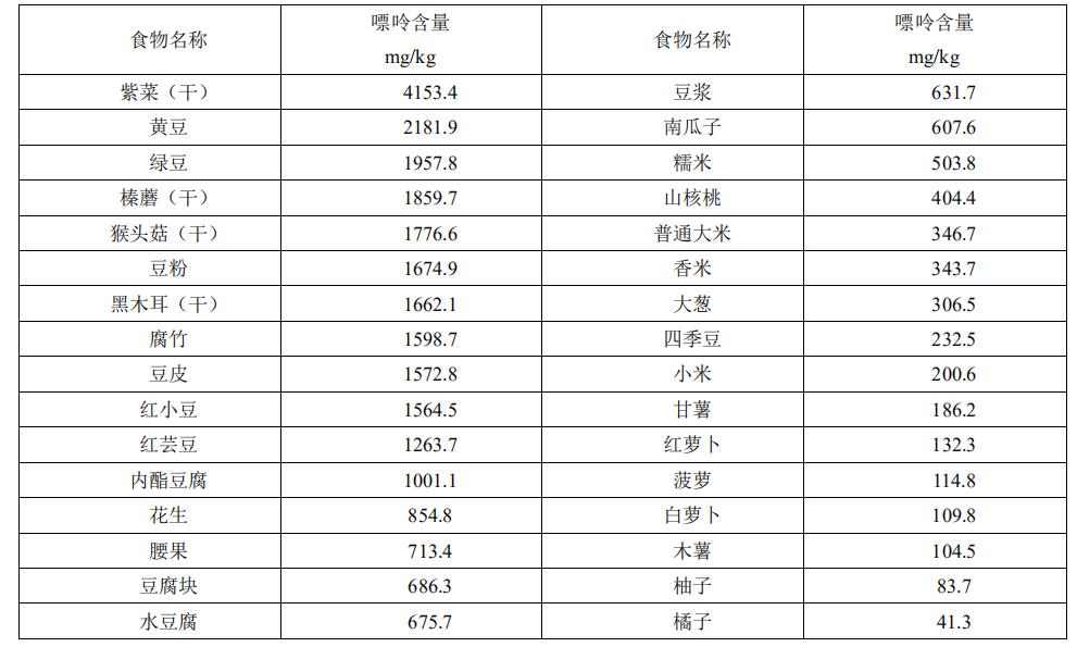 附:常见食物嘌呤含量表