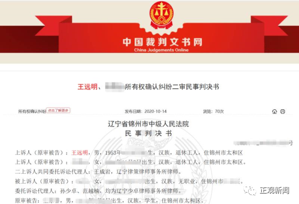 2020年10月12日,王远明提起上诉到锦州市中级人民法院,二审维持一审判决。