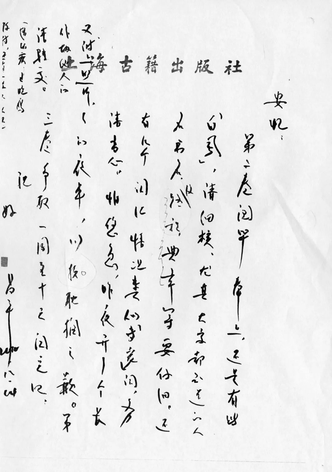 要提醒的一点是凡“实”的地方一定要核对史料,如地理、街巷、市桥、真实人物(归有光、海瑞等)的经历行事等。我对过一些,后因时间关系,手边又无书,未能逐条核对(如街市里坊布局等)。看得出您下过功夫。唯一定要找可靠的书,忌用无名作者的二手材料。反之凡“虚”的地方,要使人感到仿佛是实,这就要注意虚的分寸。本来前天可给您,但开头另写的十来(页)纸,大概忘记在松江了,又补写,耽搁了一天多,抱歉。衷心祝愿成功,一定成功。