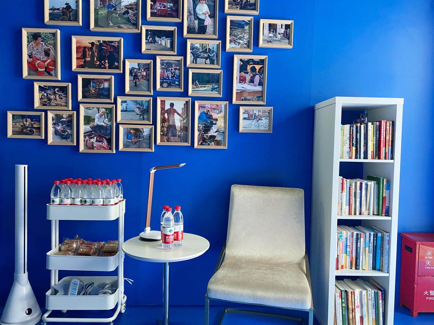 此外,休息站还布置了一个“阅读角”,书籍有百本,类别丰富,如世界名著《假如给我三天光明》、励志类书籍《没有双脚,所以努力奔跑》,健康养生类的《腰酸背痛一扫光》,还有育儿书《男孩为何要“穷”着养》等等,供骑士免费阅读。