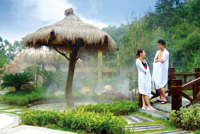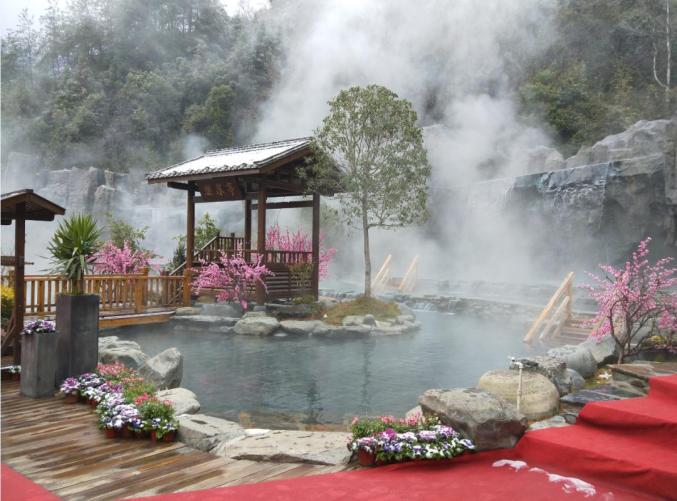 铜鼓汤里温泉靖安九岭森林温泉度假村的汤池掩映在天然丛林之中、百花园旁、清水湖畔,在此泡泉如在诗画中养生。
