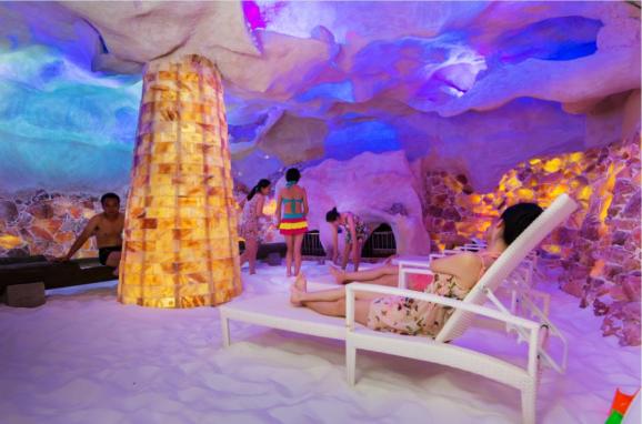明月山温汤镇全景樟树市中国古海养生旅游度假区利用地下丰富的岩盐资源,融药、酒、盐于一体,致力打造养生旅游,“海洋之恋”娱乐项目用“盐”打造的“漂浮世界”,能让每一个人都拥有“水上漂”的本领。