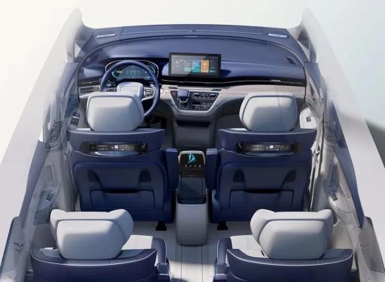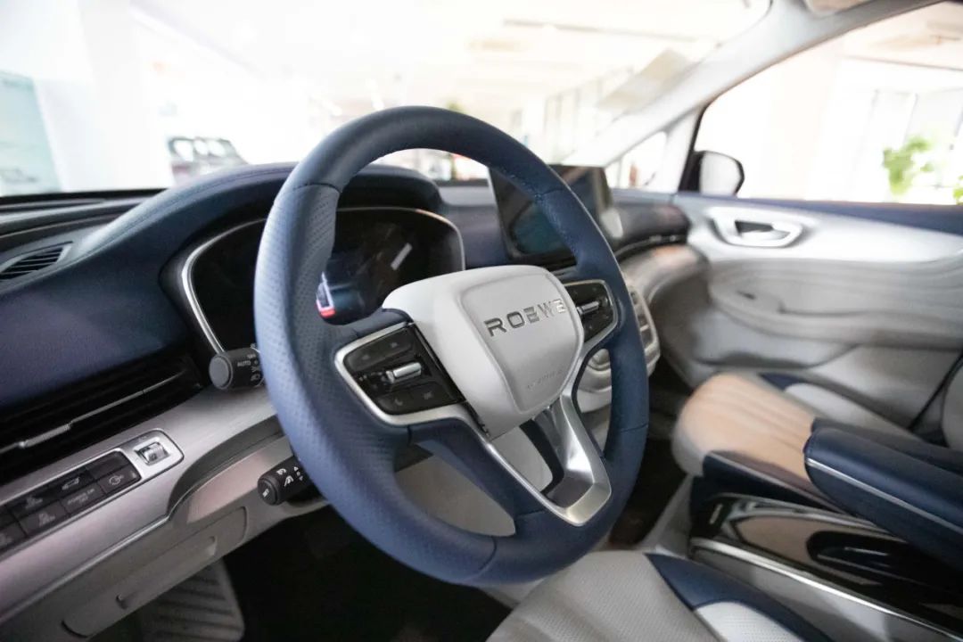 内饰配色上,荣威iMAX8提供了启航和苍宇两种风格,“启航”以蓝和白为主基调,在视觉上营造出一种前卫的视觉效果。这样的配色显然不是面向商务市场的,而是用来迎合年轻人的喜好,尤其是家庭的中坚力量,需要荣威iMAX8作为全家车型之用。“苍宇”与“启航”完全相反,黑色的座舱主基调深邃大气,这样的色彩风格对于商务用户而言有着更大的吸引力。