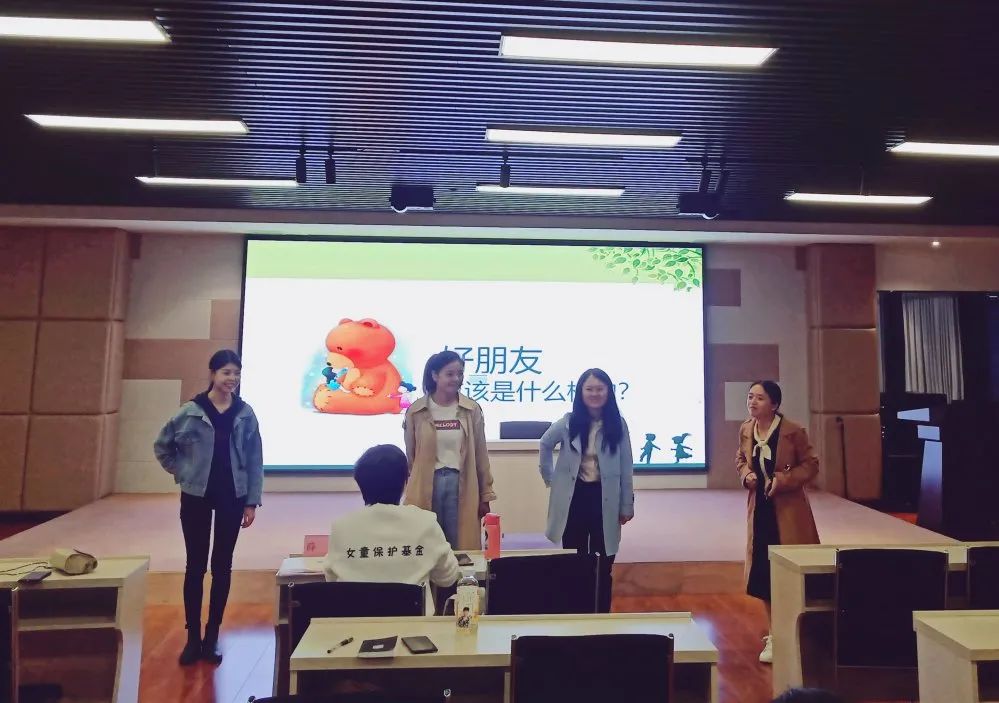 刘世峥老师女童保护基金讲师薛玲老师为大家作了一堂精彩的示范课,通过通俗易懂的语言,现场提问、情景模拟、游戏互动等方式,讲解了女童保护公益项目发起背景、正确认识自己的身体、如何分辨和防范性侵害、遇到性侵时该怎么做等知识。培训现场,学员们认真听讲,做好笔记,积极与老师互动,为争做一名合格的讲师增添了几份信心。