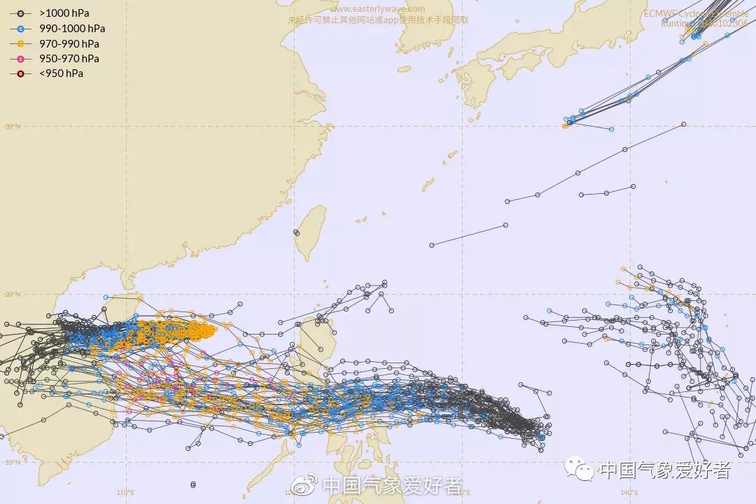 ECMWF对沙德尔、莫拉菲的路径集合分析,中气爱制作虽然“莫拉菲”直接登陆海南的可能性不大