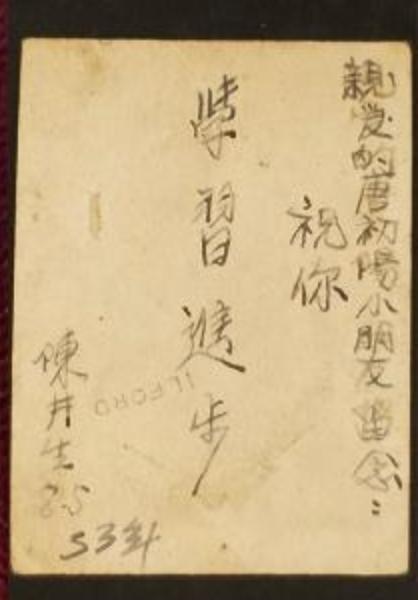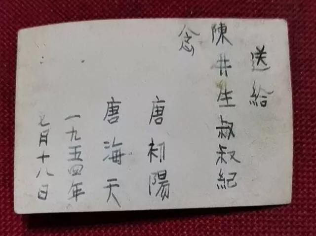并在照片背后写上了“亲爱的唐初阳小朋友留念,