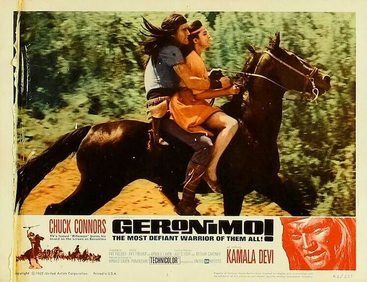 印第安人在沙场一个个倒下,顽强坚持到最后的,是阿帕契族奇里卡瓦部落的杰罗尼莫,其英名与天壤共存。战争末了,唯余几十轻骑,其中还包括妇孺,跟随他出入深山峡谷,跟联邦军精锐周旋数年,令白人种族主义者闻风丧胆。杰罗尼莫最终被逼到山巅绝境,为了余部生存他才接受媾和,经骷髅谷,由纳·迈尔斯将军押解到联邦军扎营的鲍伊堡,后转至俄克拉何马的锡尔堡被终身囚禁。
