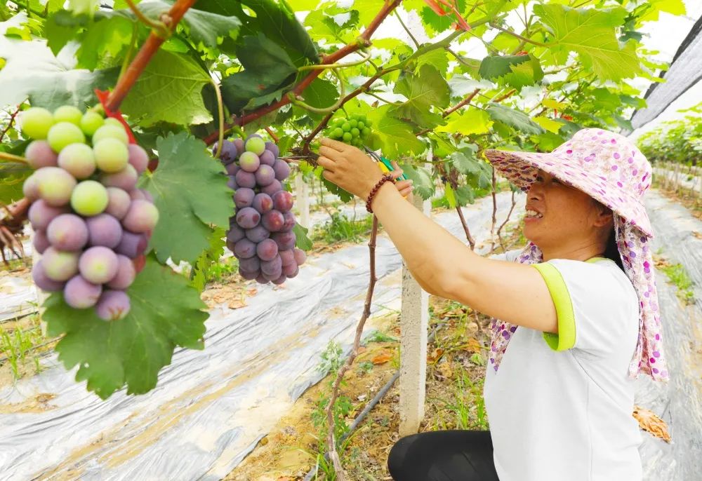 村民、贫困户在双头村水果采摘园里劳作(摄影:肖斌)2019年,园区投入3000多万元,从村里的种植基地租用了217亩农户土地,雇用村民35人,开始发展葡萄、沃柑、百香果等水果种植。运营团队在此基础上,创新开展科普教育游、农事体验游,赏花节、水果节等活动,为果园注入了源源不断的活力。