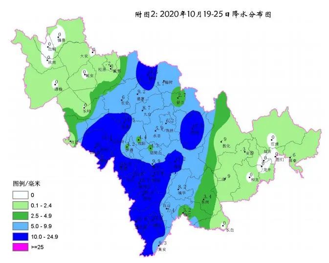 一是气温稍高。全省平均气温 6.2℃,比常年高 1.3℃(见附图 1)。其中辽源比常年低 0.1℃,其他地区比常年高 0.6℃~ 2.0℃。二是降水稍多。全省平均降水量 6.5 毫米,比常年多25% (见附图 2)。其中白城基本无降水,白山、延边、长白山保护区分别比常年少 36%、96%、73%,其他地区比常年多 17%~162%。