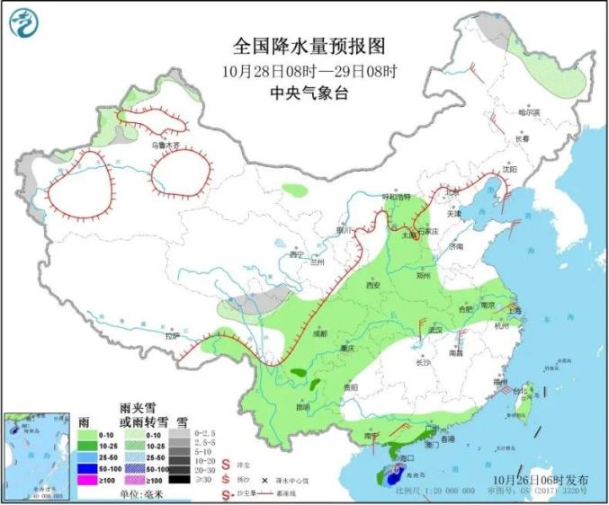 10月31日-11月1日, 全省有小雨转雨夹雪或雪,中西部有5级左右西南风,瞬间风力可达6级以上,同时气温下降。