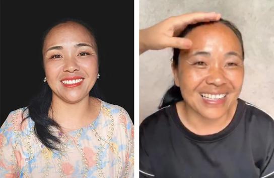 村子里的女性长辈化妆前后对比记者联系上娟子时,