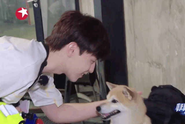 《极限挑战》里深情撸狗,温柔可人。