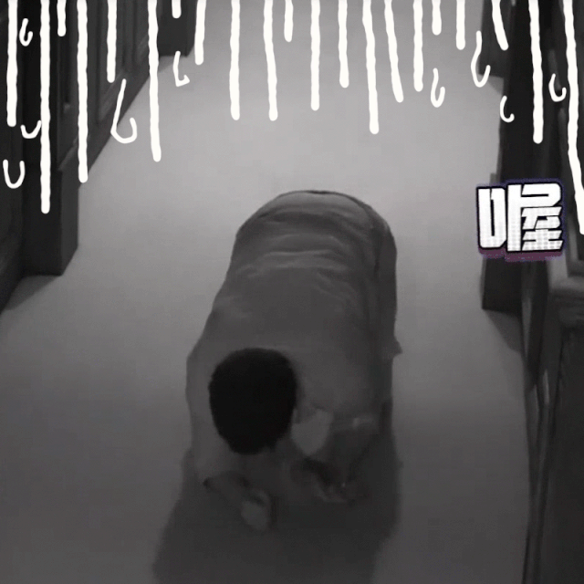 还有这张在厨房里被红衣女子当面直击,还被摸脚,整个人都被吓得崩溃,成为了太多人的表情包。