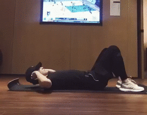 做起俯卧撑来面不改色心不跳......只是被偷拍时会偶尔笑场~