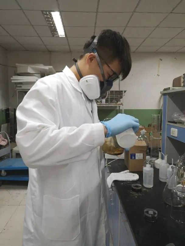 试验期间,他们先学习各装置的原理及使用,还得掌握试验中各部分的操作,然后再进一步了解沉淀法和浸渍法制备催化剂,学会热解的基本操作流程。但是困难又怎会如此,热解的不可控以及操作误差导致生物油产率难以准确测量,他们只好重新来过;试验过程佩戴的口罩给年轻的脸上填了两道红红的法令纹;每日长达十一个小时的试验让人身心疲惫……