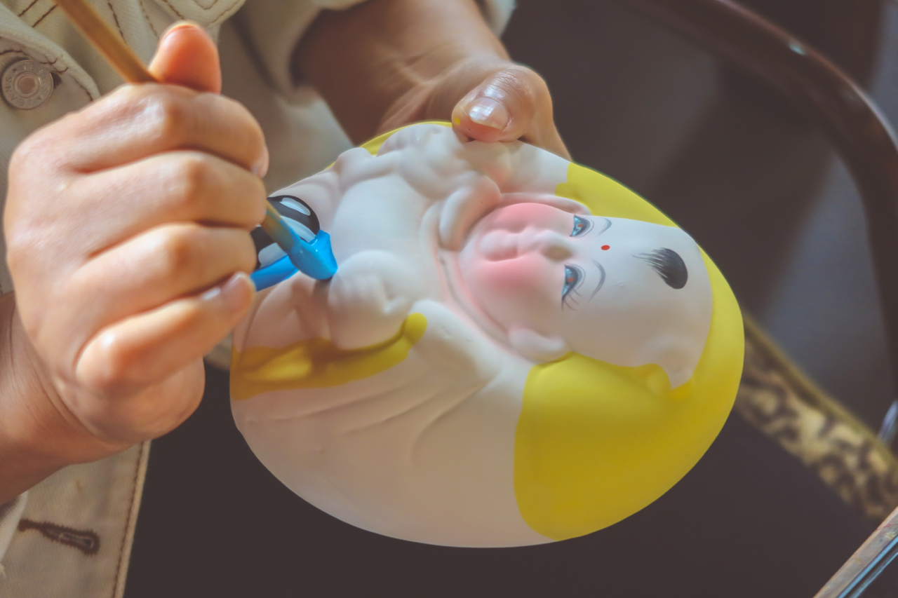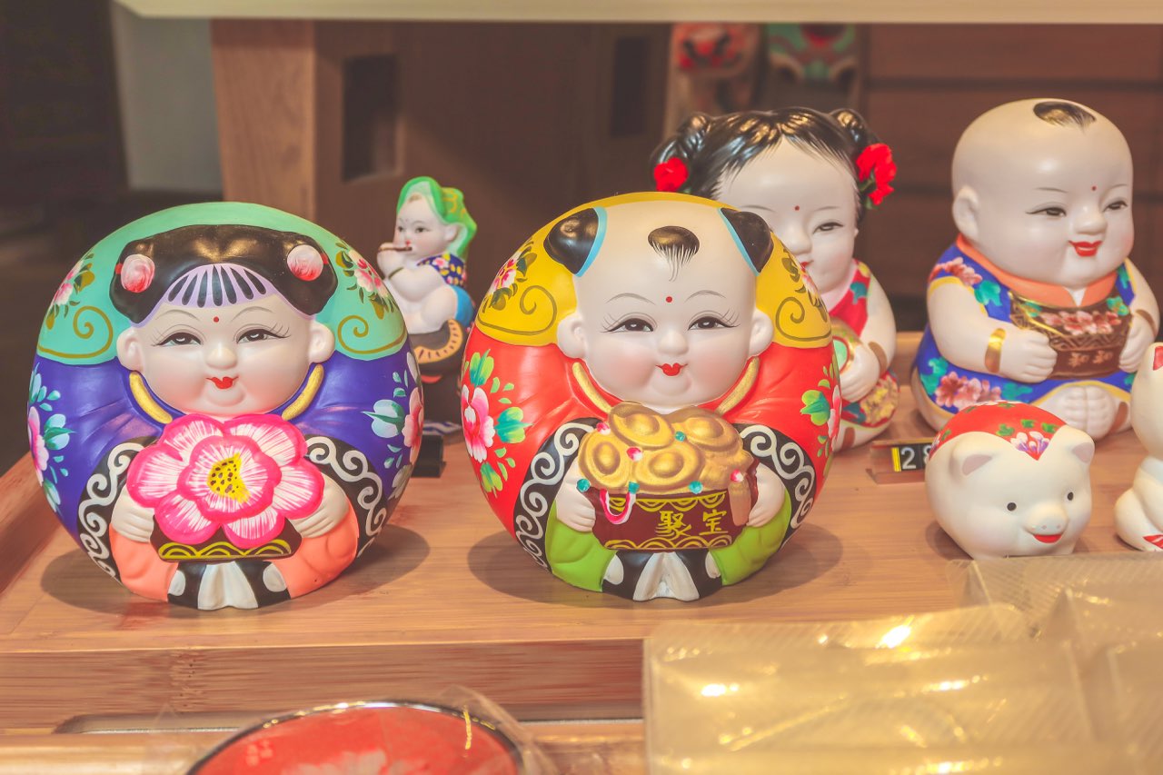 “大阿福娃娃是这个产业通俗化的一张名片,泥人最开始的作用也的确是小孩子的玩具。”龚先生推了下眼镜,清俊的脸庞文质彬彬,耐心地与我说:“我们的泥人分为模印泥人(大阿福、三胖子等)和手捏泥人。手捏泥人又称细活,是我们匠人取阴干黑泥,用双手创造原胚,再上色,世代传承下来的手艺。以前还是送往京城的贡品。”