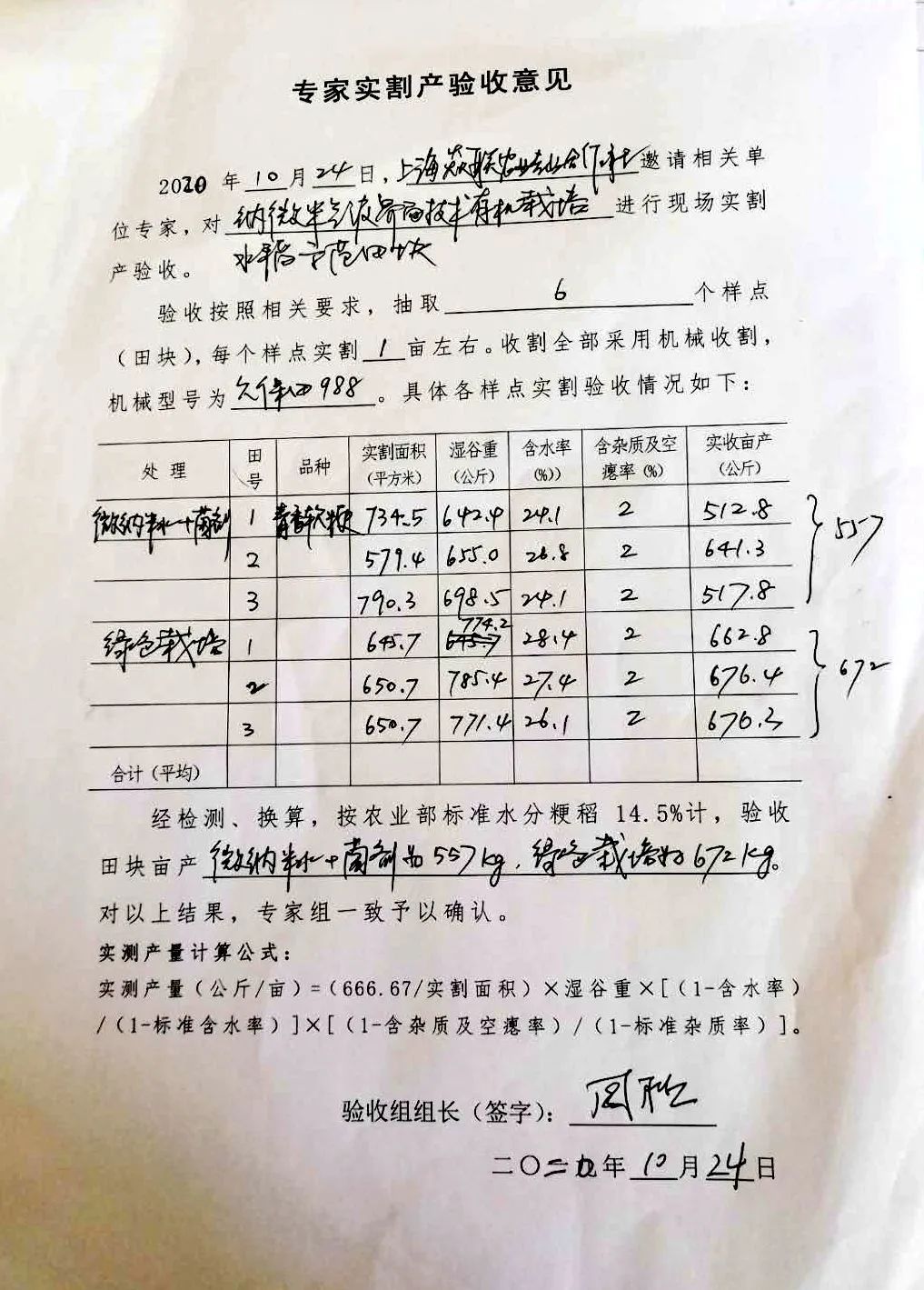 小青果说了这么多,最后看一下近日专家实割产验收意见表吧!