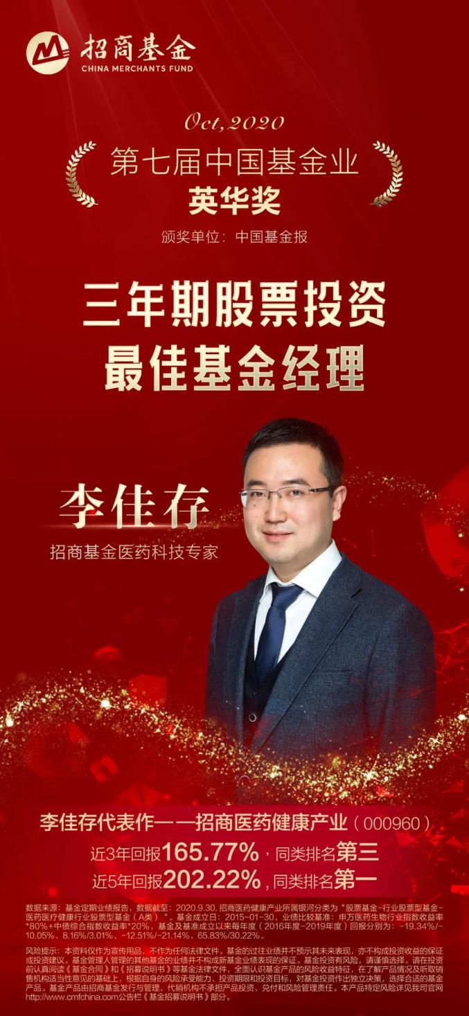 李佳存偏好投资好赛道上的好公司,尤其是从1到N的公司,希望通过坚定持有赚长期业绩增长的钱。他通过行业空间、技术壁垒、成长质量、管理层、估值五个维度,优选具有长期潜力的成长股,获得了丰厚的超额收益。银河数据显示,截至今年10月27日,李佳存管理的招商医药健康产业过去五年投资回报率达到167.07%,在8只医药行业股票基金中排名第一。