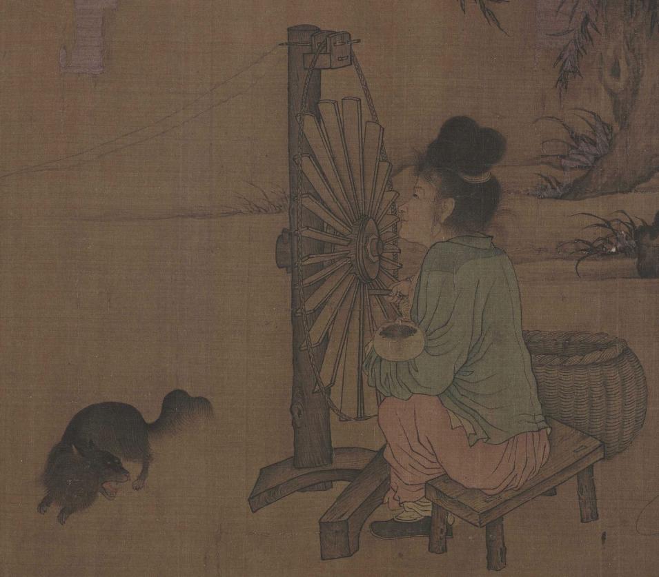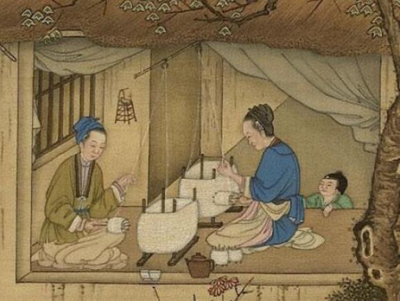 一边纺纱织布一边还得带孩子,
