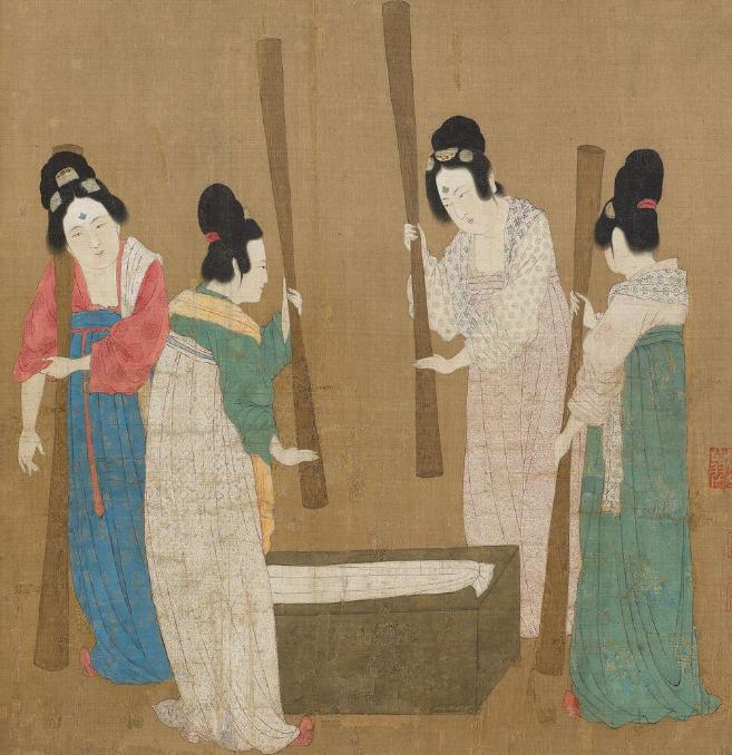 捣练、络线、熨平、缝制