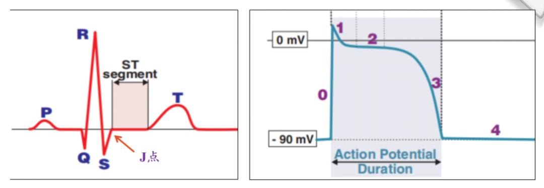 ST段是指QRS波终末(J点,或ST交界点)至T波起点的间期。ST段对应的是心室肌动作电位的平台期。