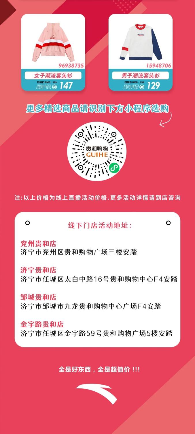 原标题:《【贵和】安踏超级内购节狂欢来袭!全场商品2折起》