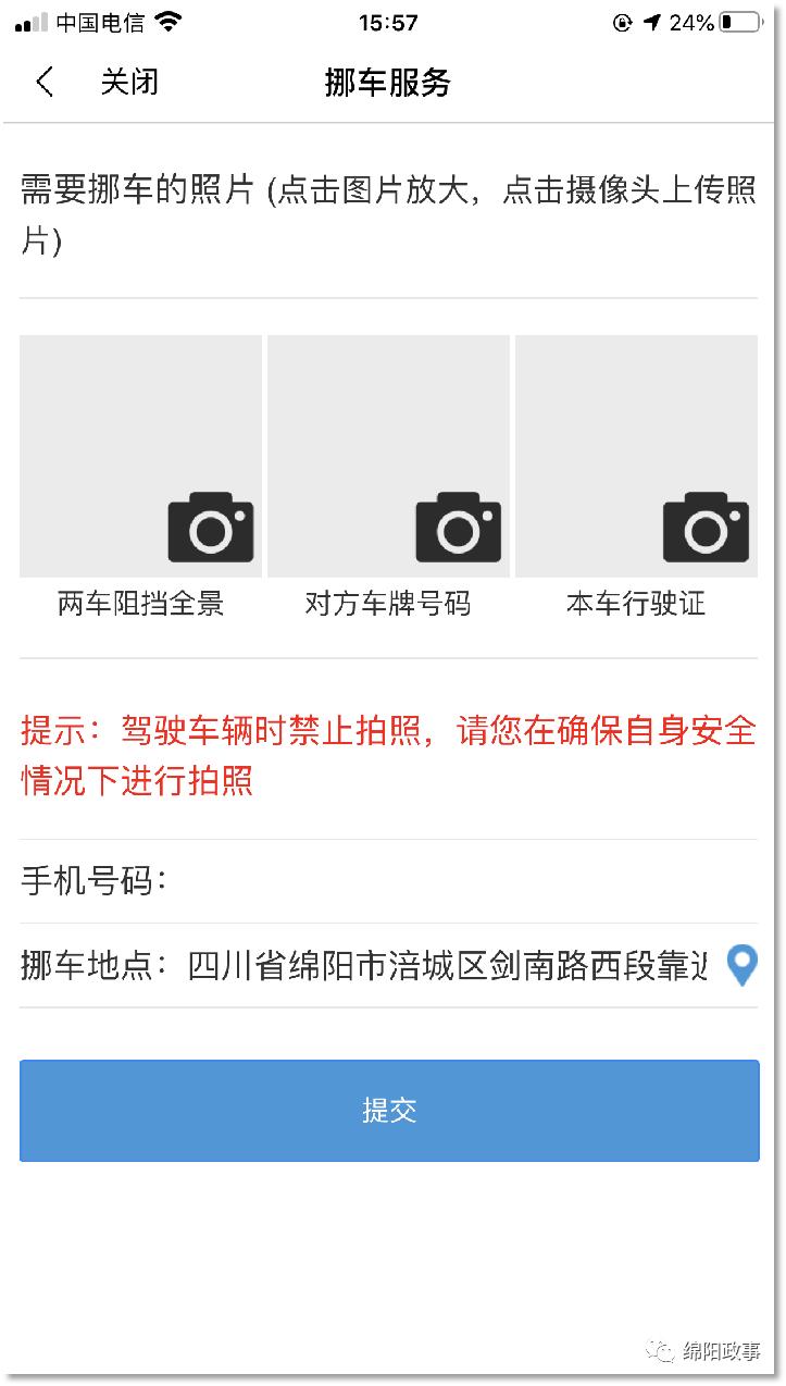 第二步按照指示输入需要挪车的照片