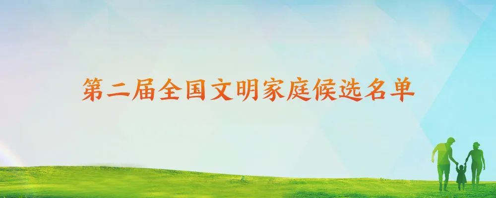 中央文明办经认真审核,提出了第二届全国文明家庭候选名单500户。按照评选办法和程序,为体现公开、公正、公平原则,现将500户第二届全国文明家庭候选名单予以公示,听取社会各界意见,接受广大群众监督。如有意见和建议,可在公示期间通过电子邮件向中央文明办反映。