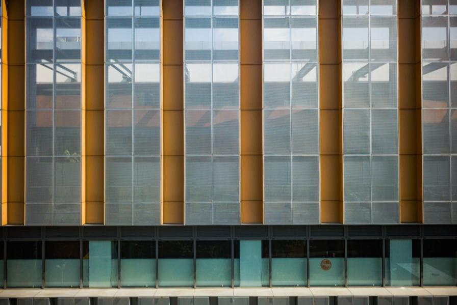 整修方案由参与“美好生活”长三角公共文化空间设计大赛的优秀设计师操刀,让这幢5层楼的建筑变换了颜值。许多半透明的金属网板罩在外墙,结合建筑内透出的灯光,营造出“灯笼”一般的效果,丝毫不影响屋内采光。建筑中部有一道玻璃幕墙,就像一条腰带一样,与金属网板形成鲜明对比。