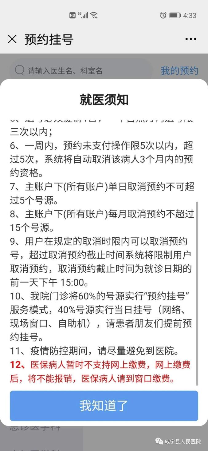 10月28日威宁县人民医院微信公众号正式开通网上就医服务啦!