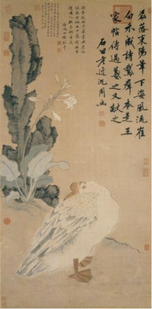 明 沈周《花下睡鹅轴》藏于台北故宫博物馆《咏鹅》这首家喻户晓的经典之作在此不再多说,来看几首以大白鹅为描写对象的诗: