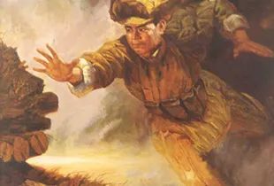邱少云,中国人民志愿军第15军第29师第87团第9连战士。1952年10月11日晚,他参加所在的部队潜伏“391”高地下面的草地时,遭到敌人的燃烧弹袭击,邱少云伏在原地,严守纪律,咬紧牙关,双手深深插进泥土中,以惊人的毅力忍受着剧痛,一声不吭、一动不动,直至壮烈牺牲。图为油画,表现邱少云忍受火烧、原地不动的场景。邱少云用年仅26岁的生命铸写了他对祖国和人民赋予的使命的忠诚。1953年8月30日被追认为中国共产党党员。1953年6月25日朝鲜民主主义人民共和国最高人民会议常任委员会授于他"朝鲜民主主义人民共和国英雄" 称号和金星奖章、一级国旗勋章。