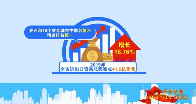 对外贸易逆势上扬。贵阳与东盟、欧盟、美国、澳大利亚、加拿大、韩国等157个国家和地区开展贸易往来。2019年,全市进出口贸易总额完成41.5亿美元,增长18.76%,在西部10个省会城市中排名第六,增速排名第一。