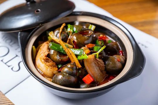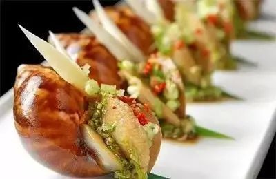 几十年的时间里,小小的蜗牛一步一步地爬上了中国人的餐桌,对于蜗牛,我们也从看到之后心怵犯嫌,逐渐转变成视其为一种良好的食材。对于蜗牛的烹饪方式,也不仅仅局限于红酒蜗牛、春天冷盆蜗牛、清汤配蜗牛、法式烤蜗牛等西式做法,蜗牛与中国传统烹饪方式相结合,也碰撞出了精彩的火花,如脆炸蜗牛卷、滑蛋蜗牛、什锦蜗牛羹、碧绿蚝油蜗牛、生菜蜗牛松、南汁炳蜗牛以及蜗牛虾仁妙饭等。