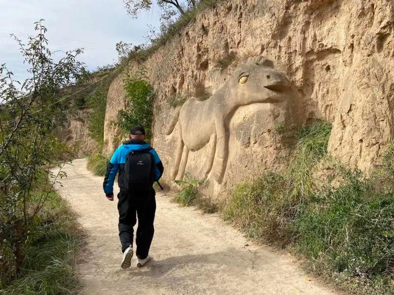 从甘肃天水的秦安县城出发,一路向北。出租车经过尘土飞扬的县道,沿峡谷爬一段陡坡,拐弯进村。山路变窄了,路边的土崖上,用木楔子打进去歪歪扭扭的一行字:“石节子美术馆”。石节子村就到了。
